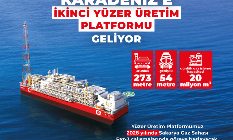 Enerji ve Tabii Kaynaklar Bakanı Alparslan Bayraktar, Karadeniz’deki Sakarya Gaz Sahası’ndaki üretimi artırmak amacıyla yeni bir yüzer üretim platformunun devreye gireceğini duyurdu. Bakan Bayraktar, “2028 yılı ortasında devreye almayı planladığımız yeni üretim platformu, Karadeniz’deki üretimimizi güçlendirecek ve bizi Faz-3 aşamasına taşıyacak” dedi.