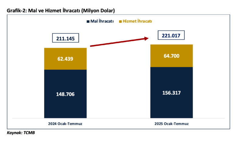 Mal ihracatı: Temmuzda aylık 25 milyar dolar, yıllık 269,4 milyar dolar ile rekor kırdı.