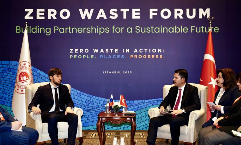 Çevre, Şehircilik ve İklim Değişikliği Bakanı Murat Kurum, İstanbul’da düzenlenen Uluslararası Sıfır Atık Forumu kapsamında Azerbaycan, Rusya, Suriye, İran, Özbekistan, Karadağ, Mali ve Malezyalı mevkidaşlarıyla ikili ve heyetlerarası görüşmeler gerçekleştirdi. Bakan Kurum ayrıca, Sıfır Atık Vakfı Onursal Başkanı Emine Erdoğan’ın İran Cumhurbaşkanı Yardımcısı ve Birleşmiş Milletler temsilcileriyle yaptığı görüşmelere de eşlik etti.