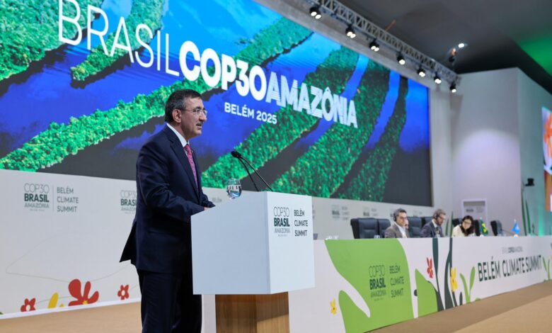 Cevdet Yılmaz, Brezilya’nın Belem kentinde gerçekleştirilen Birleşmiş Milletler İklim Değişikliği Çerçeve Sözleşmesi 30. Taraflar Konferansı (COP30) kapsamındaki Liderler Zirvesi’ne katıldı. Burada yaptığı konuşmada, dünyayı etkileyen artan jeopolitik gerilimler, ekonomik belirsizlikler ve iklim değişikliğinin etkileri gibi zorluklarla karşı karşıya olduklarını dile getiren Yılmaz, bu sorunların çözülmesinde güçlü bir uluslararası işbirliğinin önemine vurgu yaptı.