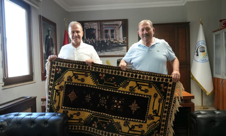 Ziyaretin anısına, ilçeye özgü motiflerin yer aldığı Milas halısı, Başkan Topuz tarafından Vahap Seçer’e hediye edildi.