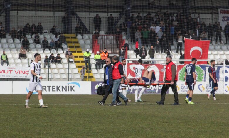 Düzcespor, ilk yarım saatte 3 as futbolcusu bozuk zeminde sakatlanarak sahayı sedyeyle terk etmek zorunda kalınca oyuncu değiştirme hakkını kural gereği kullanamayınca ikinci yarıya kadar sahada 10 kişi mücadele etmek zorunda kaldı.